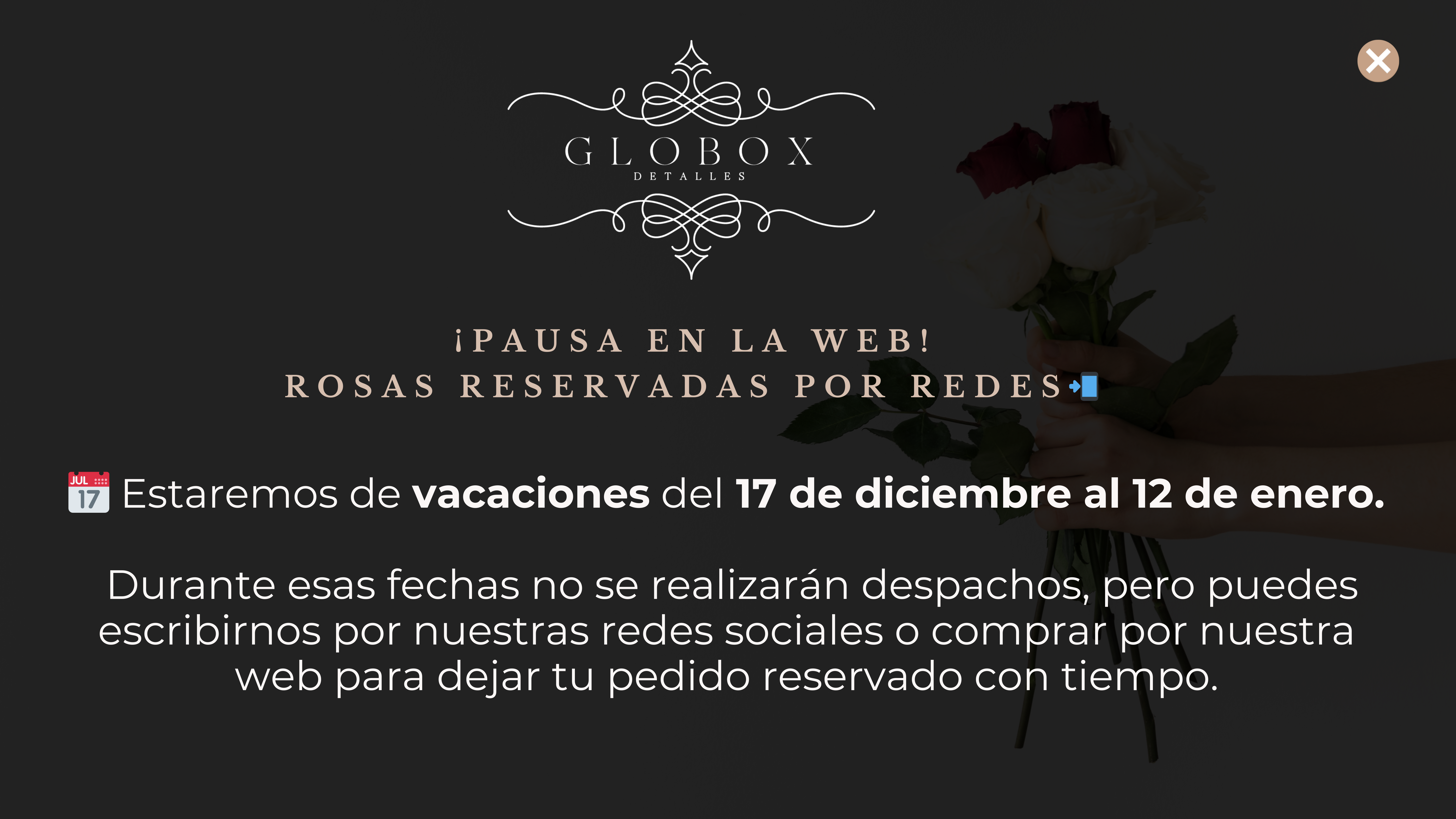 En Globox Detalles creemos que cada flor lleva consigo un mensaje y una emoción. Somos más que una florería online: somos especialistas en convertir tus sentimientos en un detalle inolvidable. Nuestro propósito es ayudarte a transmitir emociones sinceras a través de arreglos florales únicos, frescos y cuidadosamente seleccionados, porque sabemos que un ramo de flores puede alegrar, consolar, y hacer sentir especial a quien lo recibe.