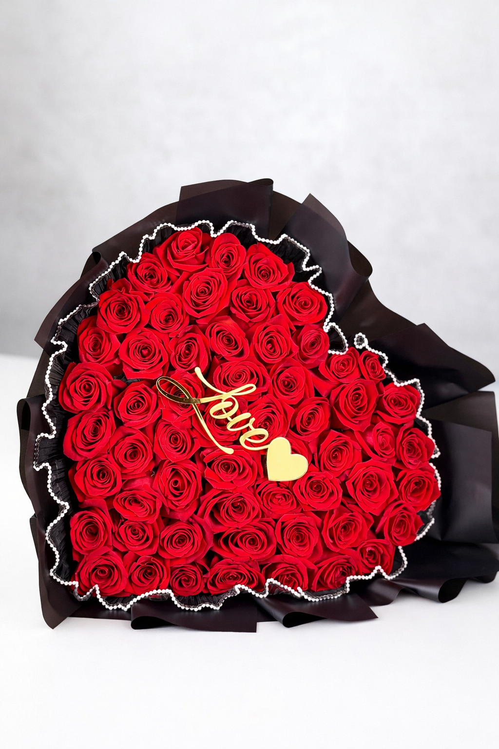 Incluye: 50 rosas aproximadamente mas una frase personalizada.
